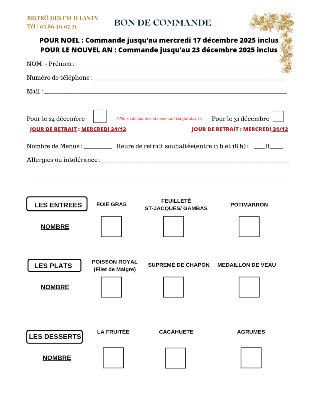 Le service du Restaurant débute à 11 h 45 jusqu'à 14 h 15 du lundi au vendredi et de 18 h 45 à 22h (dernière heure de prise de commande) les Jeudis et Vendredis soirs,