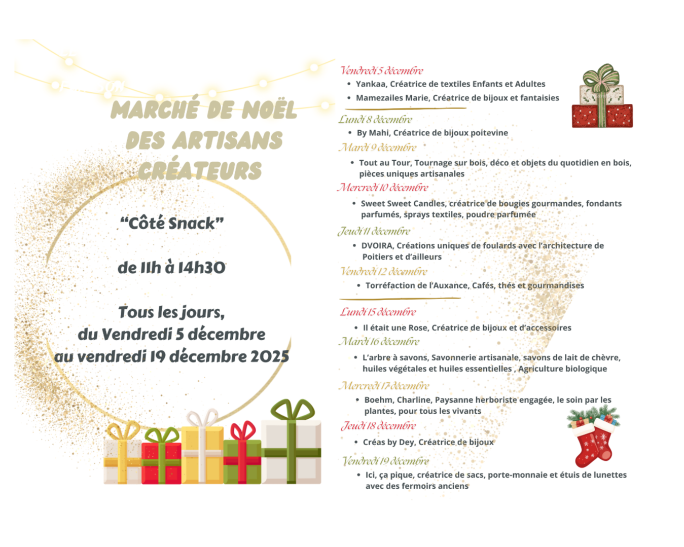 Notre côté snack "à emporter" est ouvert du lundi au vendredi en continu, de 8 h 30 à 16 h 30 (Hors vacances scolaires) on y propose un snacking "fait maison" avec des sandwichs au jambon fermier, des croques, quiches, salades et paninis mais aussi, des petits plats du jour et des desserts gourmands.