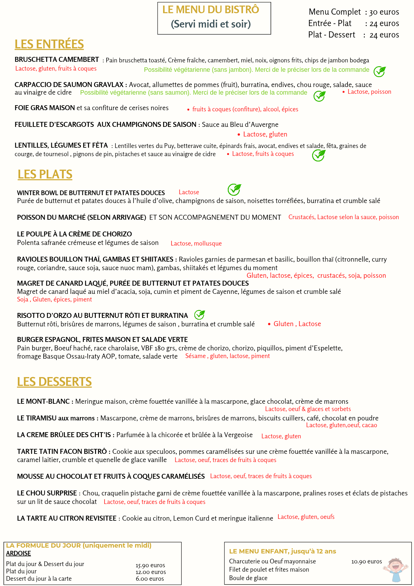 Le Bar est ouvert en continu de 8h à 18 h du lundi au mercredi et de 8h à 22 h les Jeudis et Vendredis (Hors vacances scolaires) : Nous vous accueillons avec plus grand plaisir pour venir y boire un verre, un café, un chocolat chaud, prendre un petit déjeuner, déjeuner, goûter ou dîner dans une ambiance chaleureuse avec une cuisine traditionnelle, faite maison, savoureuse et gourmande, du lundi au vendredi.